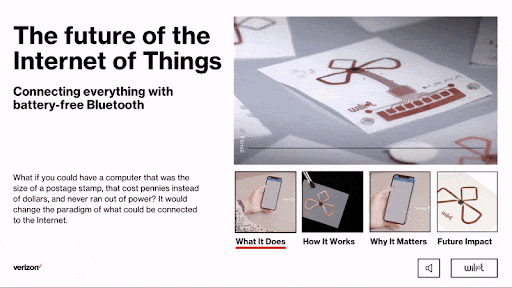 For the smaller app journey we designed and animated multiple formats for the content to populate to continue the Verizon story through the building.